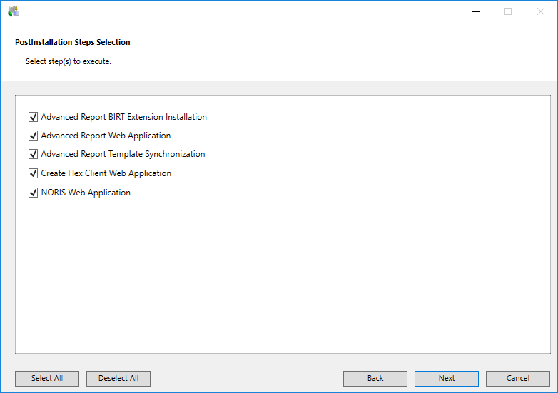 NOTE: Only those post-installation steps are displayed in PostInstallation Steps Selection dialog box for which the value for the tagExecute = AskUseris configured in the [GMS/EM Name]PostInstallationConfig.xml file.