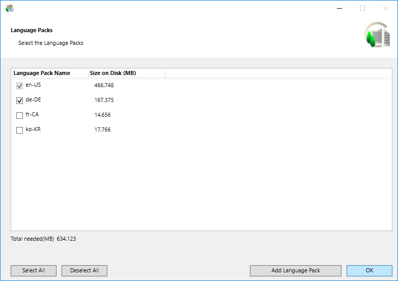- Select the language packs that you want to install.