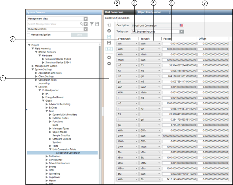 6 | Factor | Allows you to enter the conversion factor. For example, if you want to convert Watts to Kilowatts, the value in this field will be 0.001. |