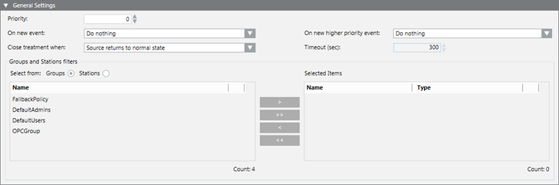 Open the Events expander and specify the combination of events that will trigger the event settings rule. For details, see Events Conditions.