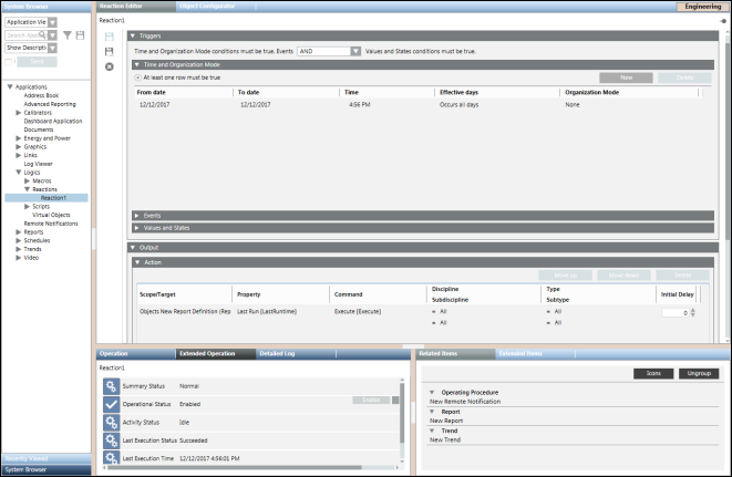 In System Browser, expand the Reports folder and drag-and-drop the report definition to be executed to the window labeled Untitled in the Graphics editor.