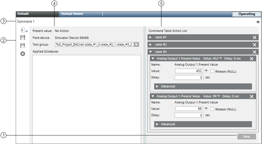 1 | New Button | Opens a new command table. |