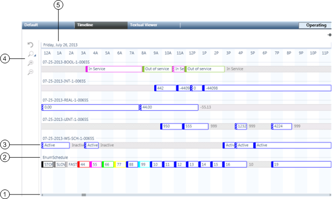 5 | Date | Displays the date you are currently viewing. The date changes when you use either the Preset Time Spans or the Time Range scrollbar. |