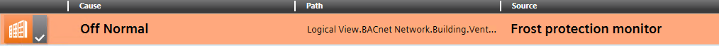 - The alarm table filters the information to the frost alarm.