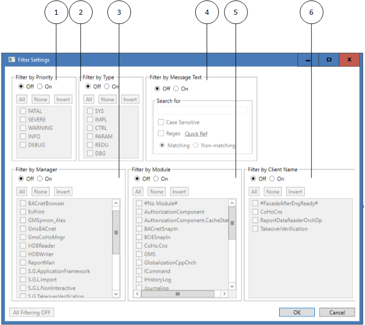 - The filter settings are stored in an XML file upon closing the Trace Viewer. When the Trace Viewer is started next time, the file is read, and the GMSTraceFilter is set accordingly.