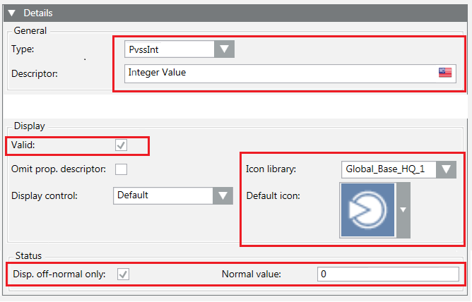 The PVSSTYPE object describes the data type of the element. It is necessary to specify the following: