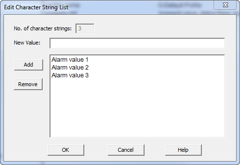 The Edit Character String List dialog box allows you to edit the Character String list.