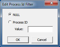 The Edit Process ID Filter dialog box allows you to apply a value for the process ID or mark it as null.