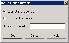 The Re-Initialize dialog box allows you to send a warmstart or coldstart command to re-initialize the selected device.