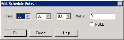 The Edit Schedule Entry dialog box allows you to edit only weekly schedule entries that have a simple value type such as a float, integer, unsigned, string, Boolean, etc.