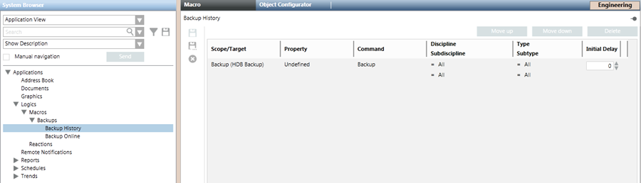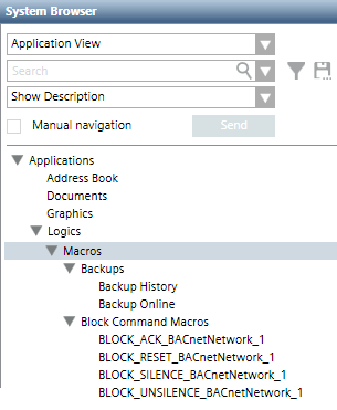 - To add a new instruction (row), drag-and-drop the desired target object from System Browser into the empty area inside the Macro tab. The Manual navigation check box must be selected to do this.