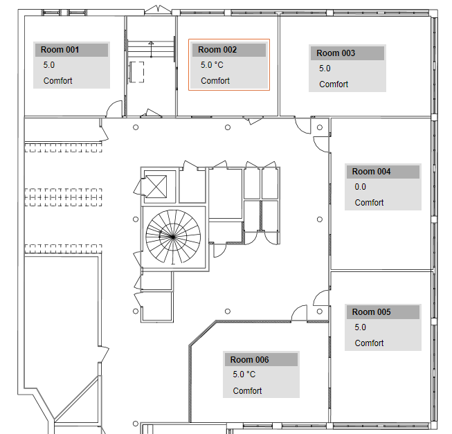 You can operate the room lab directly in the graphic or in the Operating tab.