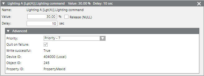 NOTE: In principle, any priority between 1-15 can be selected. Other BACnet operator units also use priority 8 though. So that any BACnet operator unit can reset the override to priority 8.