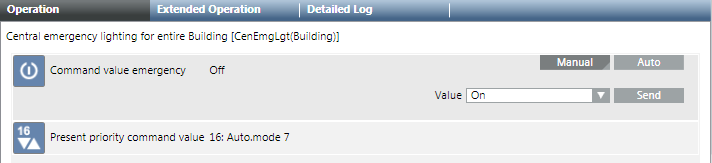 - In the Operation tab, select the Emergency Lighting Control Command property.