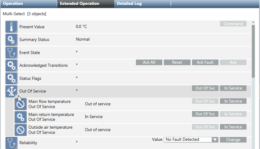 - The objects must be of the same object type, such as analog input. If different object types are selected, in the Operation tab, the message