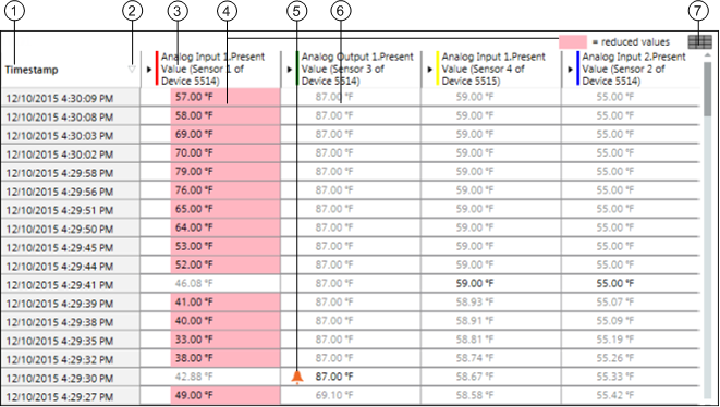 4 | Displays the values in a reduced manner and with a red background if a long time frame is selected in the Trend View. |