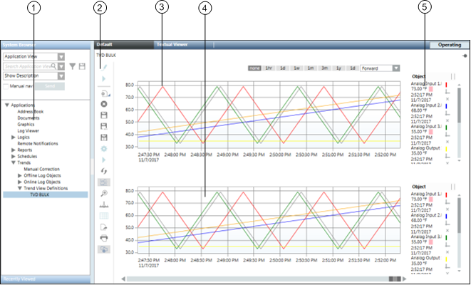 1 | System Browser | Displays available Trendlog objects, as well as created Trend Views. |
