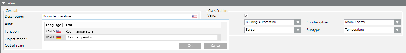 The data point attributes in the Main expander can be bulk engineered. The Object Models of selected data points may be different, but the data points must belong to the same system.