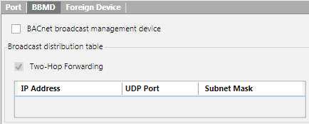 Management platform and Desigo automation stations are available on different IP segments. The management platform is entered as a participant in the FDT (Foreign Device Table) on the automation station using the FD (Foreign Device). Only IP automation stations are integrated on the BACnet network.