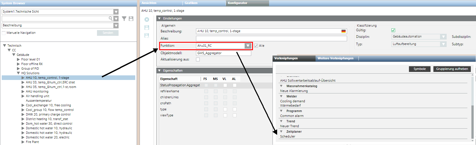 - The implementation is a generic feature and can also be used for other related links (see Example 2). It requires installation of the Desigo System extension.