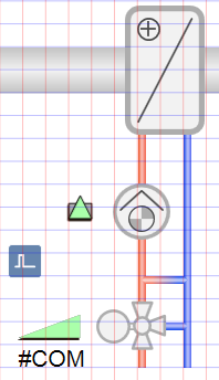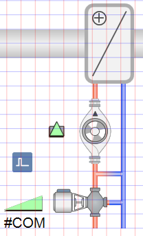 The graphics page is drawn using 2D symbols (pumps and valves) and must be changed to 2D+.