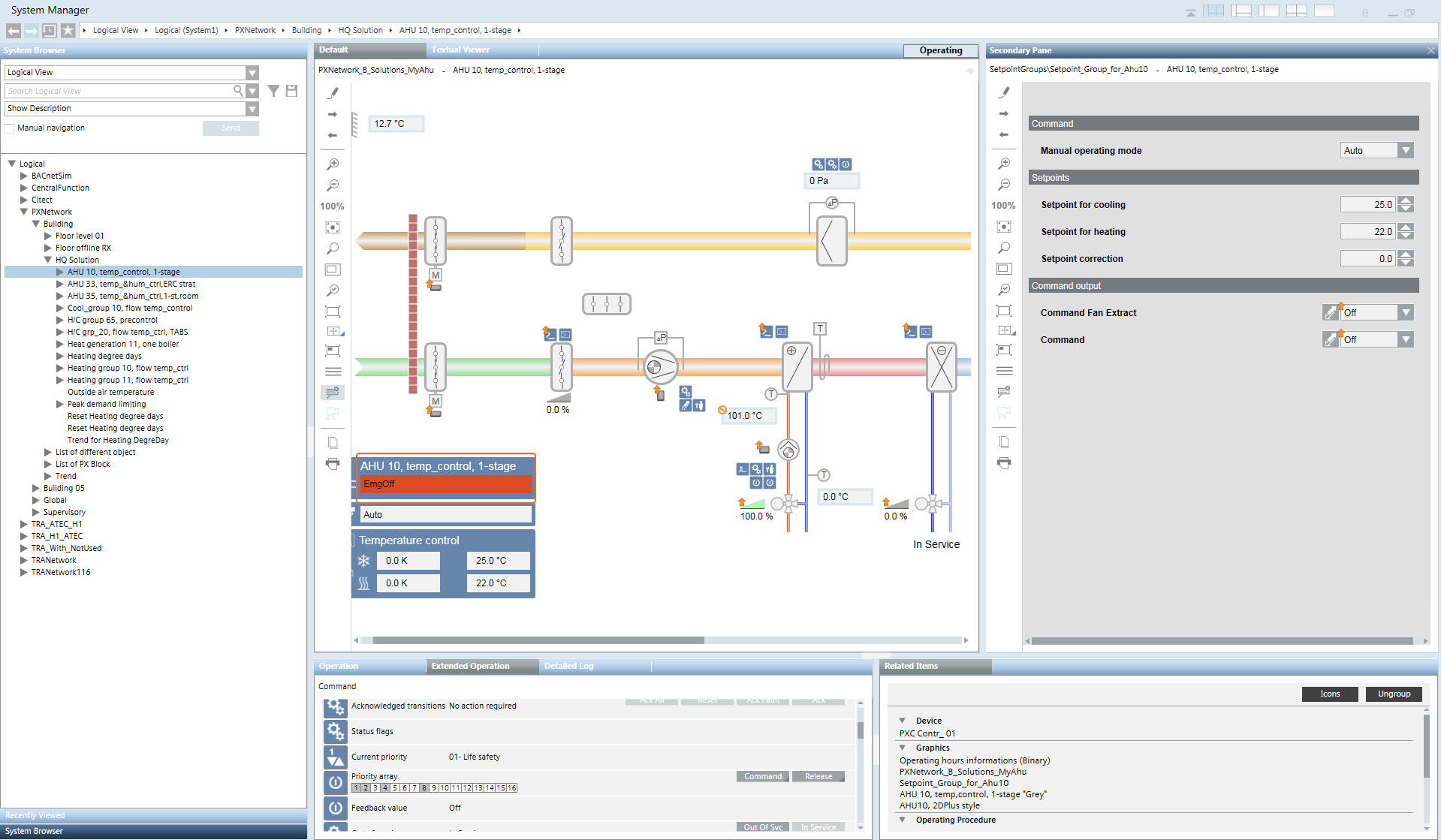 You can operate the Desigo PX heating curve directly in the graphic or in the Operation tab.
