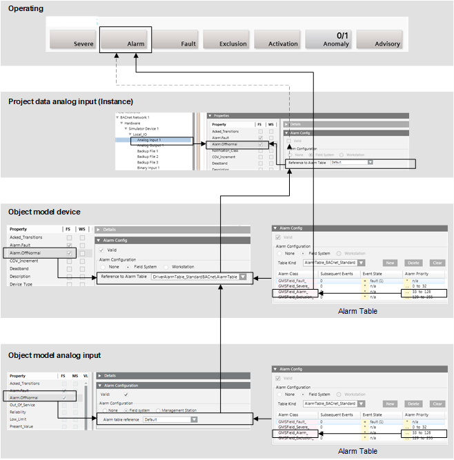 If third-party BACnet devices are integrated in Desigo CC, the alarm table must be checked in accordance with the alarm priorities of the applicable vendor or adapted where applicable. The changes are made per device.