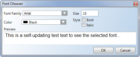 The Font Chooser window allows you to customize the font settings for text in the Header and Footer fields of a document. Settings made are stored with the header and footer settings in the user settings.