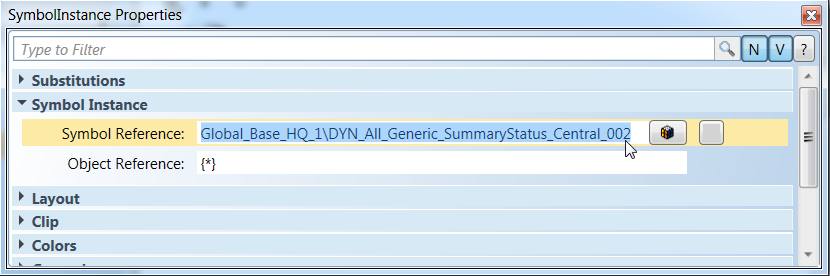 In the SymbolInstance Properties view, proceed as follows (see Figure The Reference to the Background Image): a. Locate the Symbol Instance > Symbol Reference text field. b. In System Browser, select Show Description [Name].