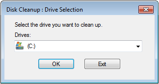 - The Disk Cleanup : Drive Selection dialog box opens.
