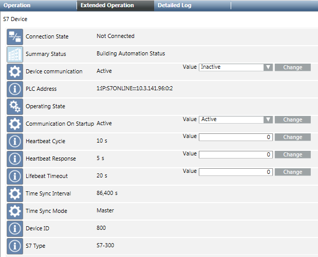 If Communication On Startup =Inactive, the device will never start the communication when the driver starts (even if Device communication =Active). In order to communicate with the S7 device, the Device communication must be set toActiveagain. - Heartbeat Cycle