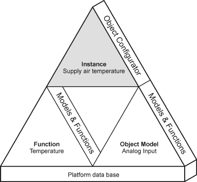 The figure below provides an overview on the interaction of object model, function, and instances, and the associated editors.