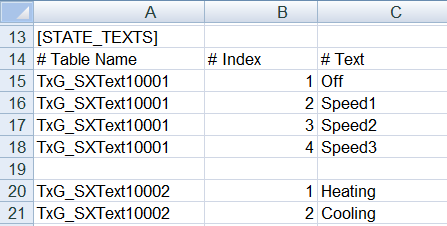 | Enter only states that are not standard OPC texts. A separator must be added between the states. |