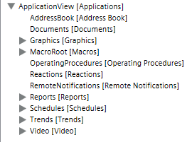 - Application View: Displays various applications, for example, central functions, scheduler, reports, documents, trends, etc.