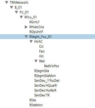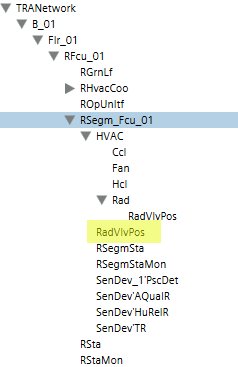 During import, the pre-processor evaluates which rooms exist from a segment. Any individual room found, is amended using the prefix R_ to R1S_ . In the event of function R_HvacCoord11, function R1S_HvacCoord11 is entered as a new reference.