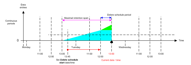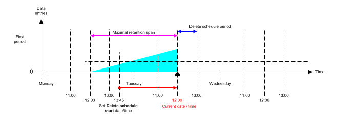 The delete process for the data starts if the set start time (Tuesday 12:00) is reached.
