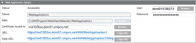 This expander allow you to configure the web application details including name, path, certificate for web application signing, and the user, and password.