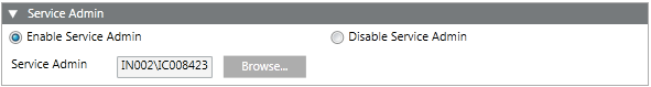 This option allows you to configure the local/domain user as the Service Admin. By default, the currently logged-in Windows user is set as the Service Admin.
