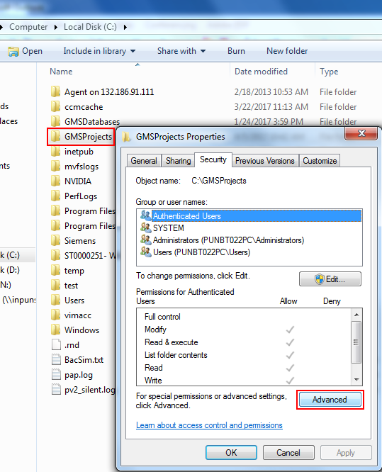 For example, C:\GMSProjects\Project1. - Right click the project folder to open the Properties window.