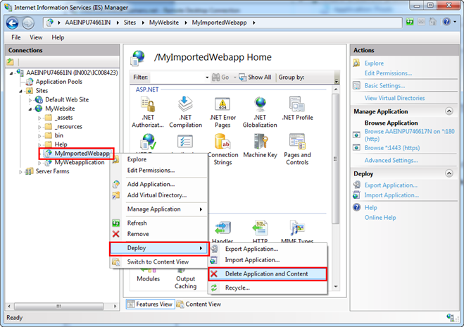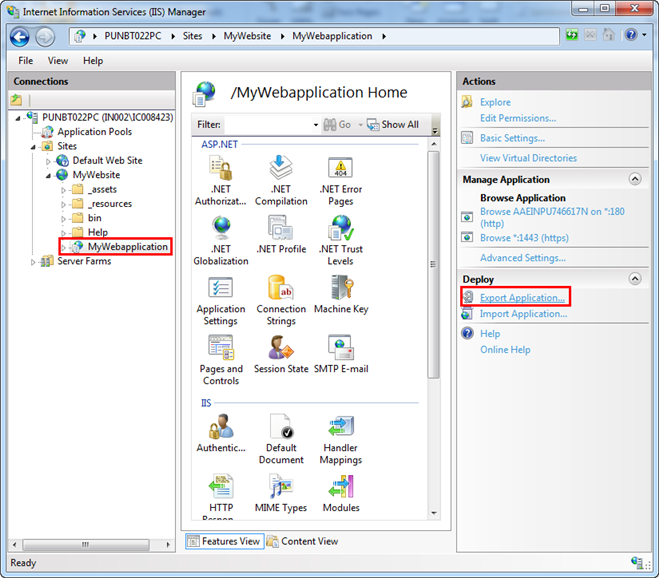 - You are on the target machine and you have successfully imported the web application in IIS.