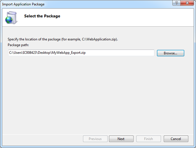 - Copy the zip file of the exported web application that you want to import at a desired location on the target machine.