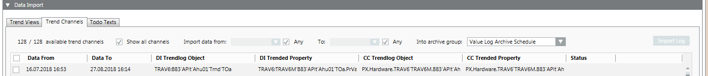 - In the Data import expander, select the Trend channels tab.