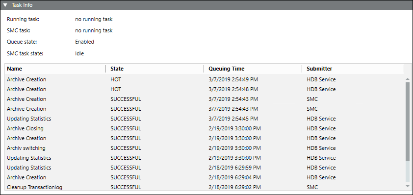 SMC task state | Displays the state of tasks to be run: