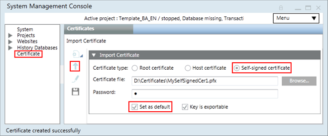 - In the SMC tree, select the Certificates node.