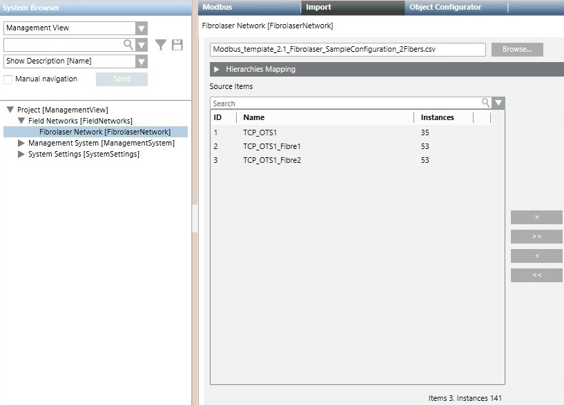 To transfer the interfaces to import from the Source Items list to the Items to Import, click .