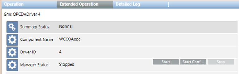 In the Extended Operation tab, click Start. NOTE: Only for configuration purposes, you can also click Start Conf. to activate the driver without establishing any real connection to the field.