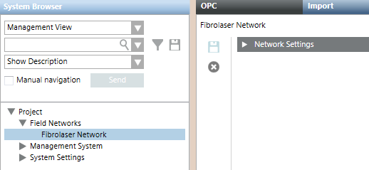 When the import completes, the imported configuration data structures are added to System Browser under the OPC network. Each OPC server contains the related OPC groups, and each OPC group contains the related OPC items.