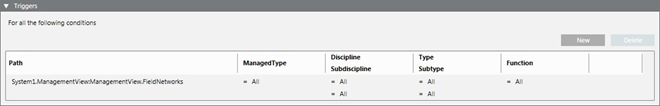 Function setting in the Triggers expander | Function for the selected system object | Result |