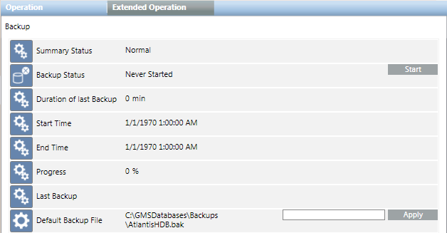 - The system begins backing up the HDB database. The default backup location is [installation drive:]\GMSBackups. Although the Last Execution Status indicates