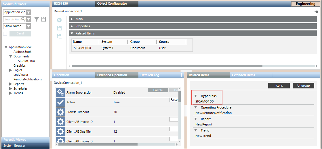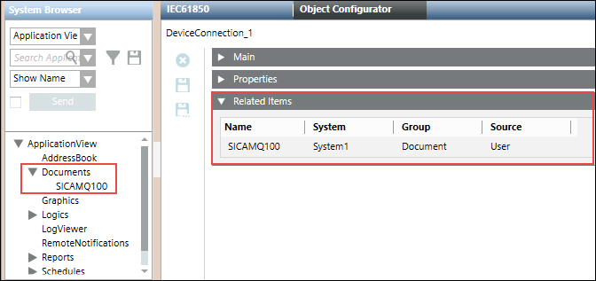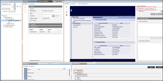 - Navigate to the Management View and select the device connection object from below the IEC61850 network.